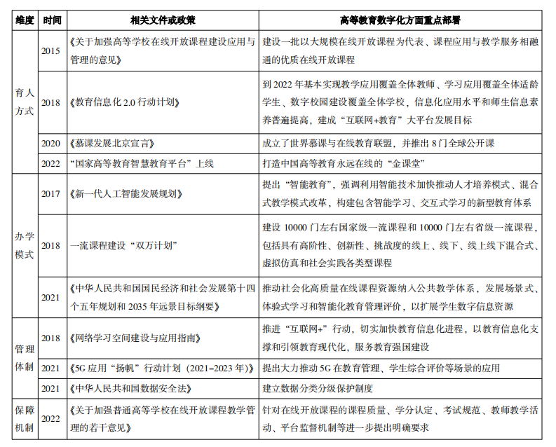 表1 中国高等教育数字化政策一览