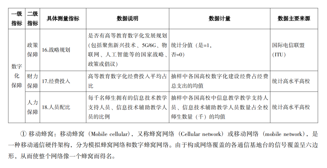 通用性原则。高等教育数字化发展指数是以世界各国为研究对象的宏观评估工具,必须立足当下,面向世界。指数研制应注意不同国家发展水平的差异,将集成性指标分解细化为基础性、关键性指标,化繁为简、化难为易,既能从宏观上体现通用的特征,又能从微观上表现关键性。