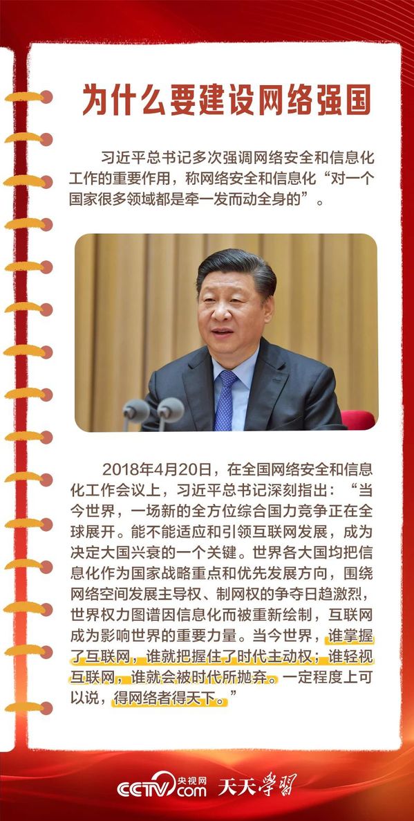 党的十八大以来,习近平总书记高度重视网络强国建设,在网络强国建设实践基础上,提出了一系列新思想、新观点、新论断,形成了伟德体育官网网络强国的重要思想。在这一重要思想引领下,我国互联网发展进入全新时代,网络强国蓝图徐徐铺展。 为何要建设网络强国?总书记谋划了一条怎样的网络强国之路?我们一起学习思考。(来源:中央广播电视总台央视网)